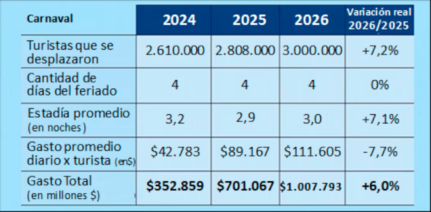 El fin de semana XXL de Carnaval dejó cifras muy positivas para el inicio de 2026 y el sector turístico se entusiasma con repetir el buen desempeño a lo largo del año.