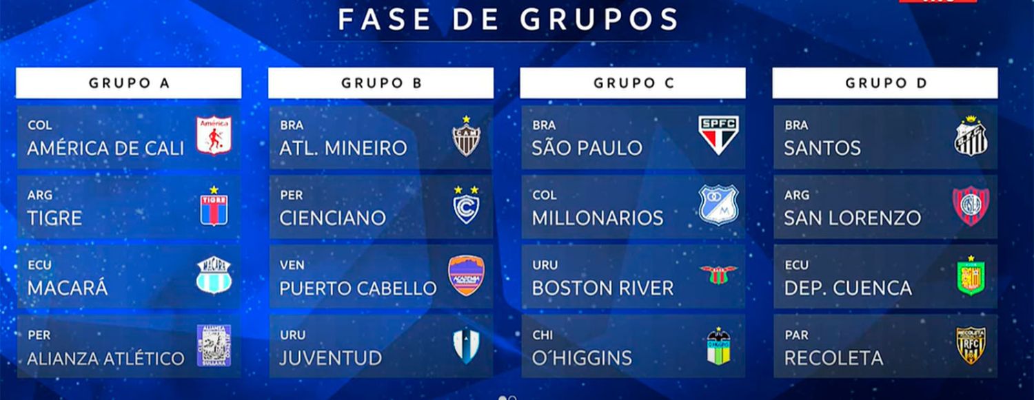 En el bombo 2 se destacó la presencia de San Lorenzo, que será rival del Santos de Neymar en el grupo D, el cual completan Deportivo Cuenca (Ecuador) y Recoleta (Paraguay). En ese mismo copón salió Tigre, que dice presente en el grupo A junto a Macará (Ecuador) y Alianza Atlético (Perú).