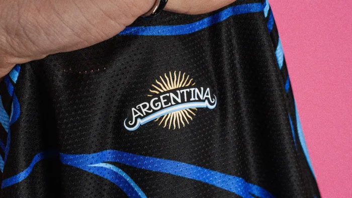 La nueva camiseta presentará obviamente el escudo de la Asociación del Fútbol Argentino (AFA) con sus icónicas 3 estrellas, un logo con la inscripción "Argentina" y otra con el Sol de Mayo en la parte dorsal del cuello. El número frontal de los jugadores se corre del centro del pecho para pasar sobre el lado izquierdo, debajo de la marca de las tres tiras.