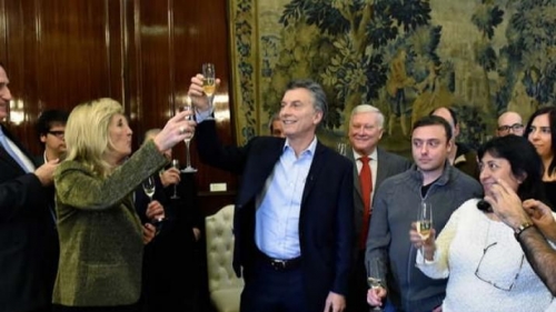 Macri invitó a los trabajadores de prensa acreditados en la Casa Rosada a un brindis y, en ese marco, brindó un breve discurso felicitando a los periodistas que ‘defienden la libertad de expresión’ y respondió preguntas.