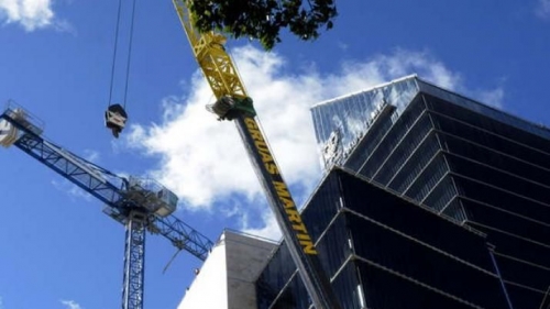 Mientras se ultiman detalles, ayer, desde horas tempranas, una grúa móvil procedía a retirar la torre grúa ubicada en lo alto del inmueble, que sirvió para construir el edificio del Data Center.