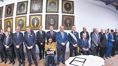 "Hace doscientos años, esta misma sala cobijó a un grupo de valientes que tuvo la decisión y el coraje de iniciar el camino de la nación independiente", añade el texto.