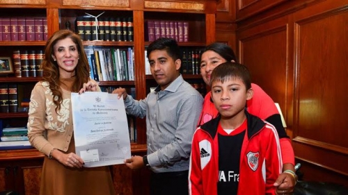 La Gobernadora de la Provincia, Dra. Claudia de Zamora recibió en Casa de Gobierno, al joven Daniel Maldonado que se recibió demedico clínico en Cuba y concurrió acompañado por su madre, Sandra Maldonado. En un encuentro cargado de alegría y emoción, la Primera Mandataria Provincial lo saludó cálidamente y lo felicito por el logro adquirido en la Escuela Latino Americana de Medicina de la capital de Cuba.