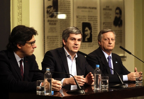 El jefe de Gabinete, Marcos Peña, y los ministros Juan José Aranguren (Energía) yGermán Garavano (Justicia), brindaron una conferencia de prensa en la Casa de Gobierno, luego del fallo de la Corte Suprema de Justicia decidiera frenar el aumento de las tarifas de gas para los usuarios residenciales. "Nuestra tarea no pasa por discutir los fallos de la Corte Suprema, sino por cumplirlos. En la Argentina que estamos viviendo es normal que los fallos se cumplan", indicó Peña. "Se va a emitir las órdenes a las empresas para que refacturen con el cuatro tarifario anterior", agregó.