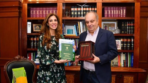 Al comenzar la reunión y a modo de agradecimiento por su visita la Gobernadora le regaló a Lombardi un mate santiagueño, además del libro de Santiago y el Martin Fierro traducido alquichua.